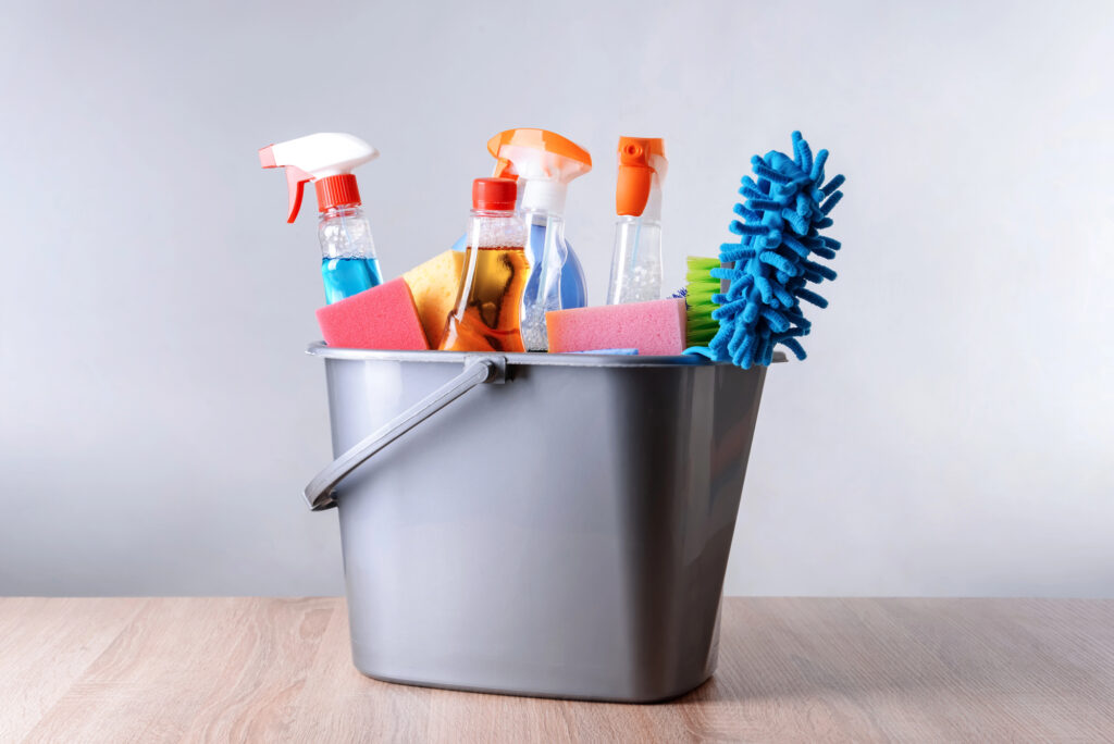 Préparez un “kit ménage” accessible dans un seau ou panier :